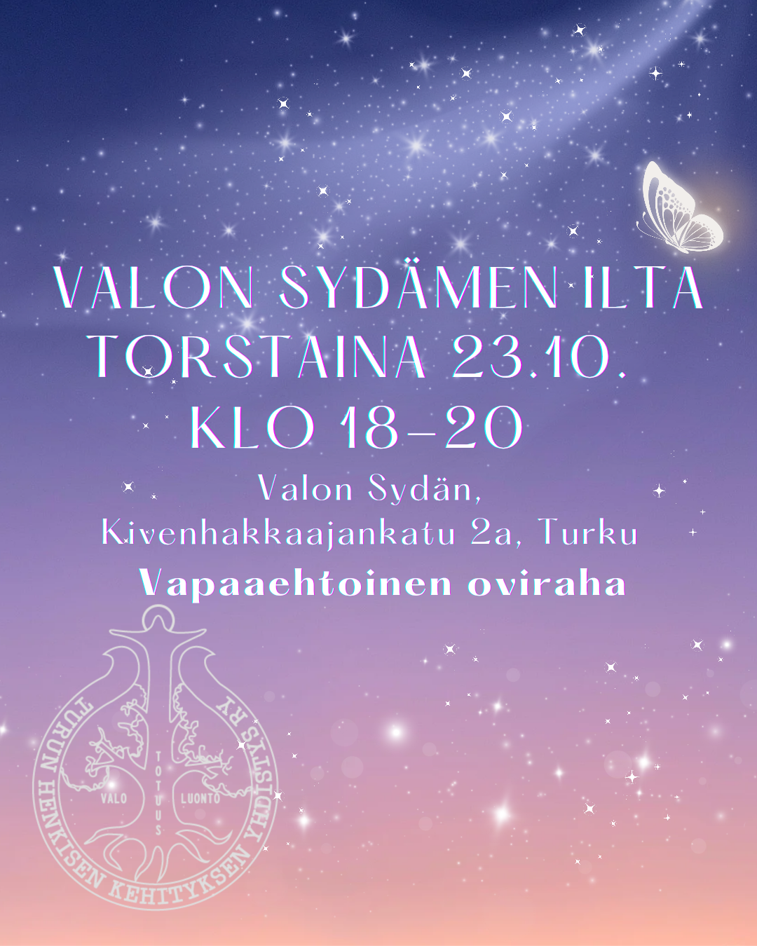 ✨️💖Valon Sydämen ilta💖✨️ Torstaina 23.10 klo 18-20 Tule kannustamaan meitä henkisen polun harjoittelijoita – ja virittäydy samalla Valon voimaan.✨️ Lämpimästi tervetuloa mukaan lämpimään ja lempeään…