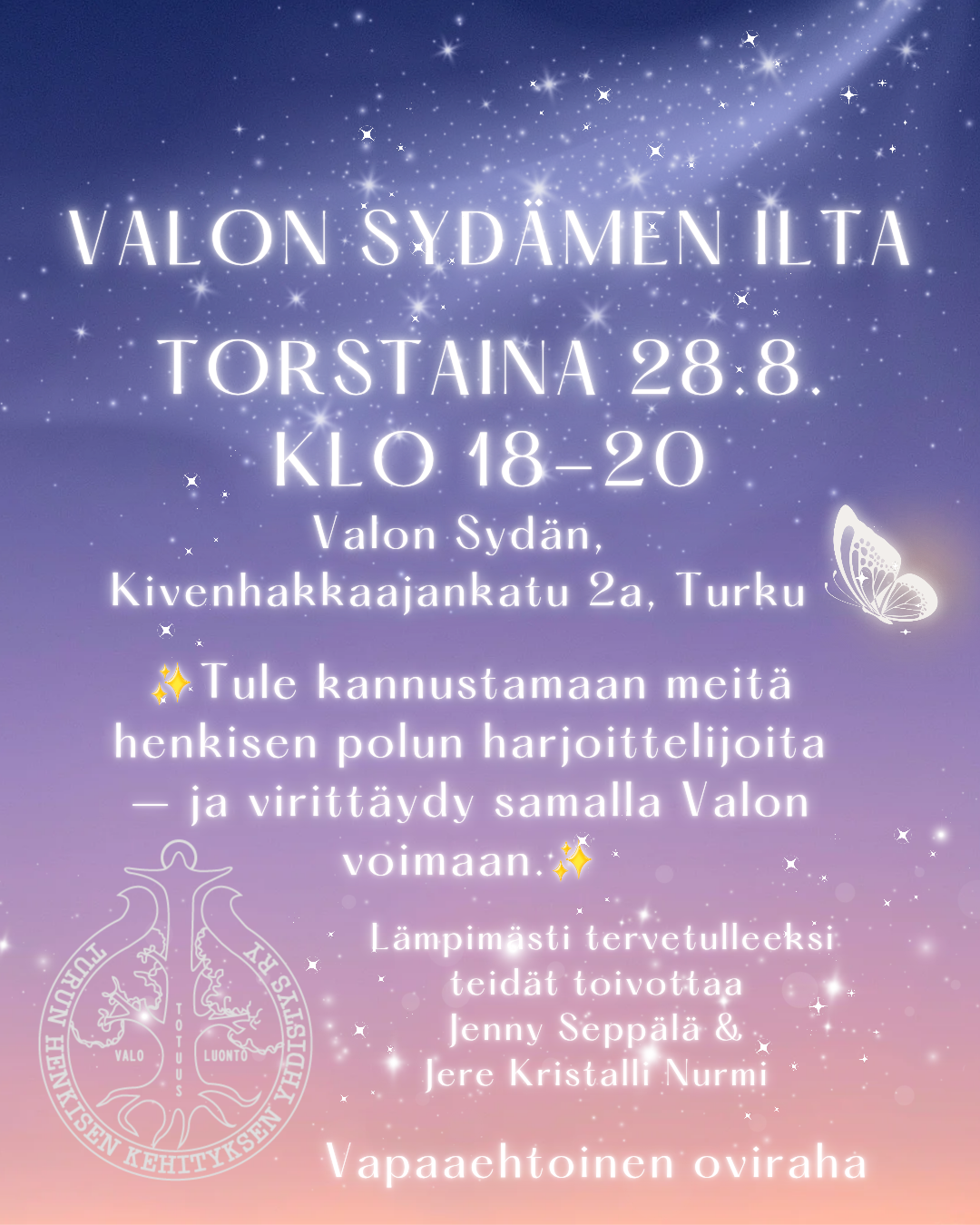 ✨️Tule kannustamaan meitä henkisen polun harjoittelijoita – ja virittäydy samalla Valon voimaan.✨️