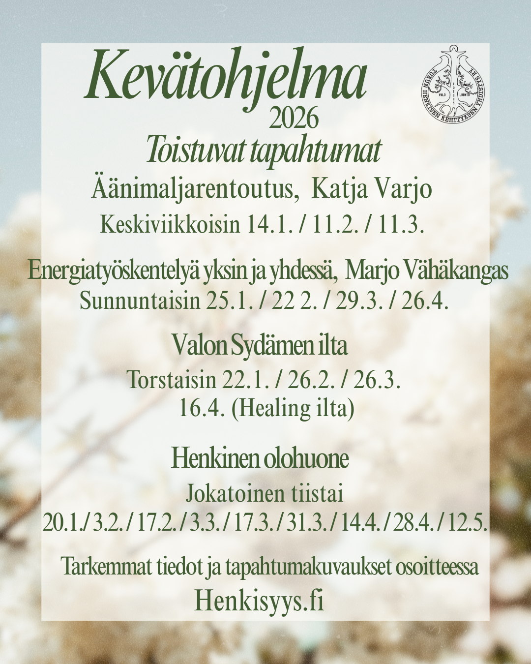 Kevät 2026 ohjelma on julkaistu ja ilmoittautuminen tapahtumiin hyvää vauhtia käynnissä!