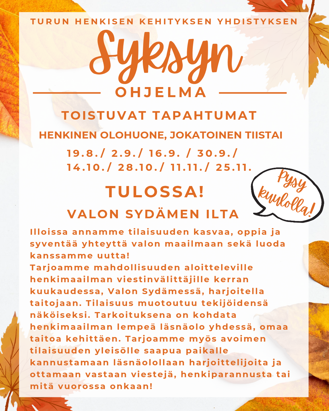 Syksyn ohjelma on julkaistu ja hyvää vauhtia käynnissä!