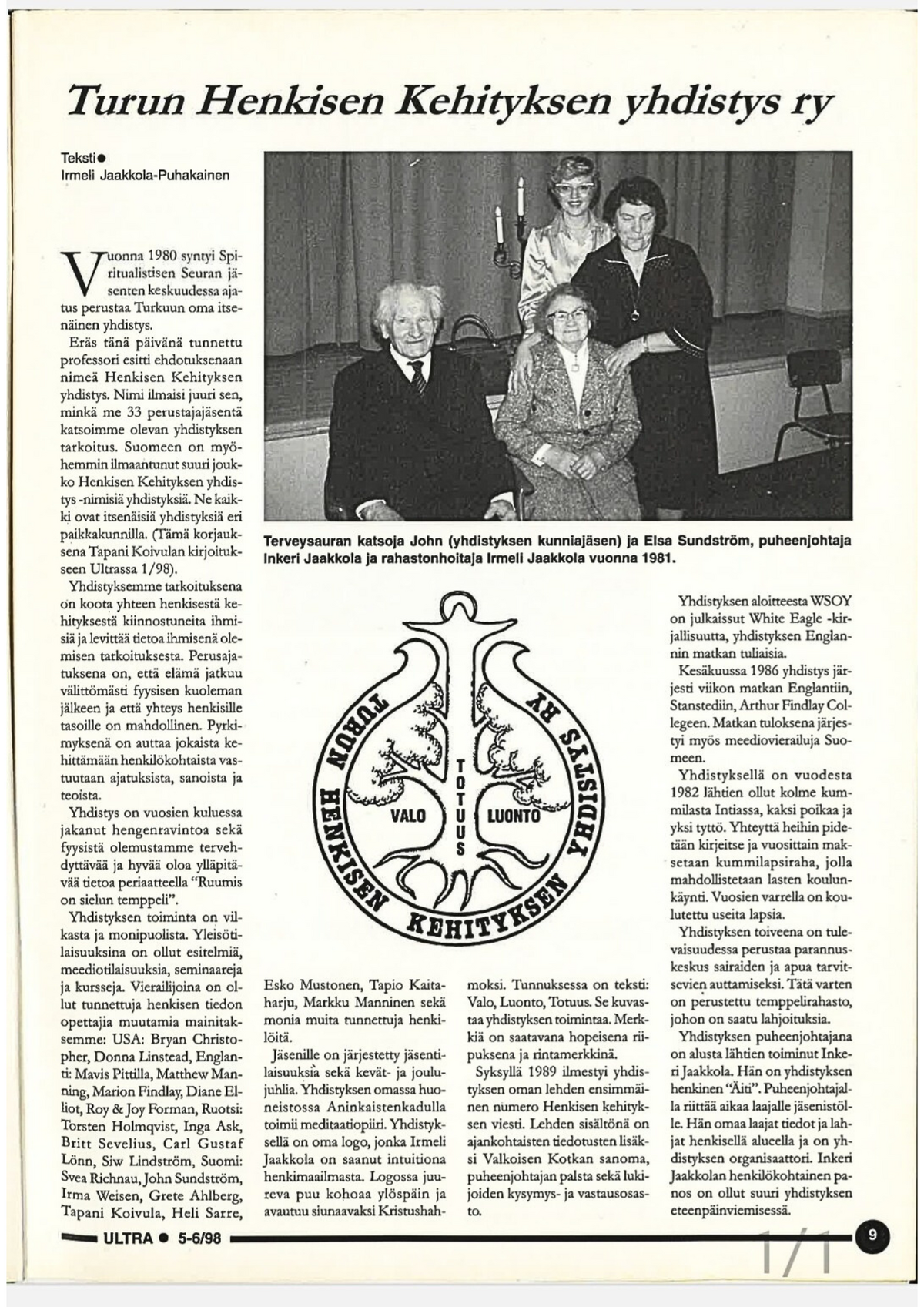 Marraskuussa tehtiin myös historiaa kun Turun seudun kolme henkistä yhdistystä järjesti ensimmäisen yhteisen meediotilaisuuden, meedio Tiina Lindforsin johdolla.